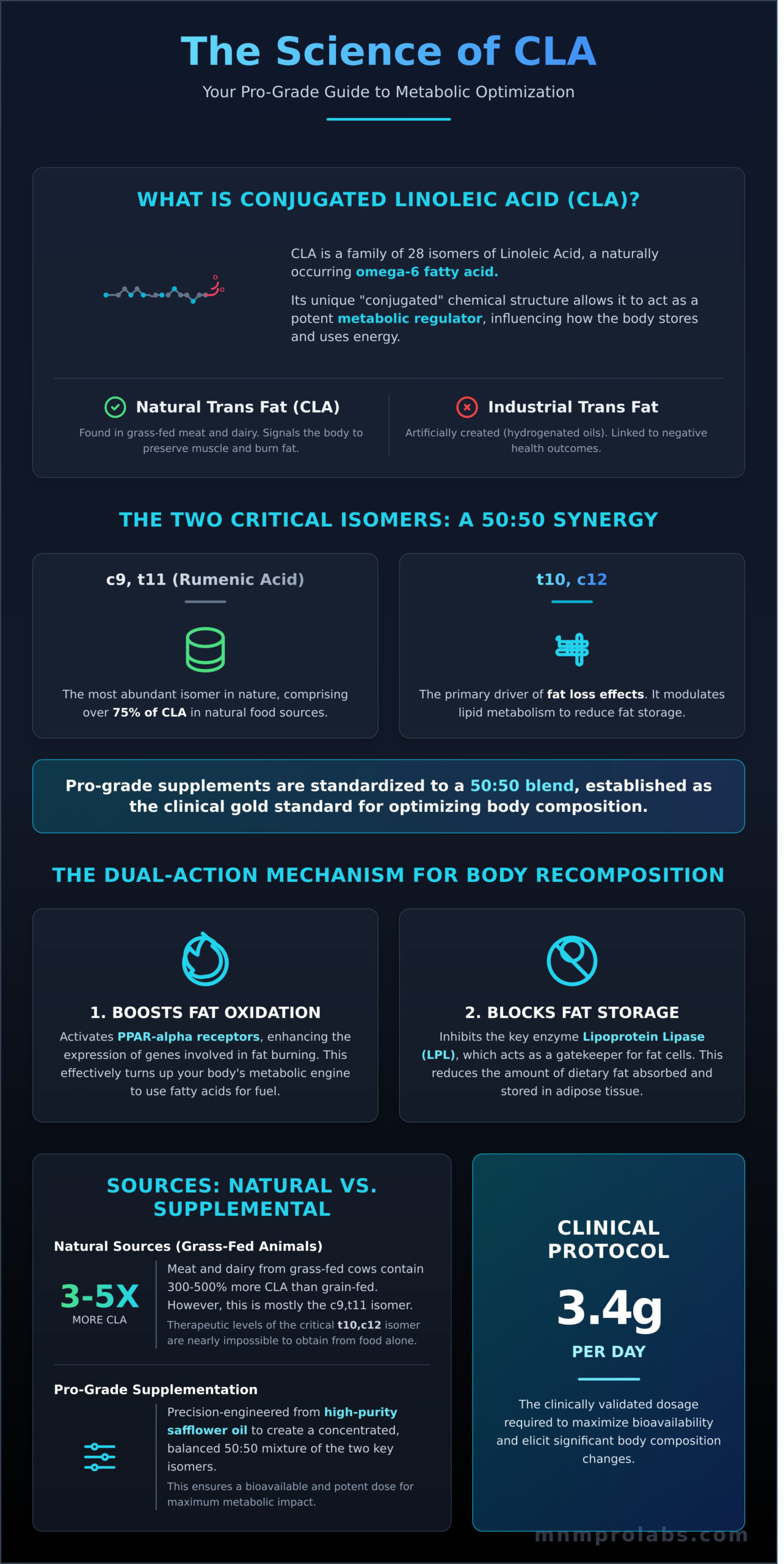 This scientific review is your definitive guide, designed to cut through that noise. Here, you will discover the clinical evidence behind CLA’s key isomers, detailing precisely how they can modulate metabolic pathways to preferentially reduce body fat while providing a powerful anti-catabolic signal to preserve lean tissue. We’ll deconstruct the peer-reviewed data, differentiate between the critical c9,t11 and t10,c12 isomers, and deliver a pro-grade protocol for uncompromising metabolic optimization.
