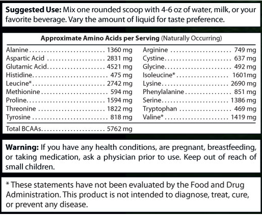Total BCAAs Per Serving: 5762 mg (Naturally Occurring)