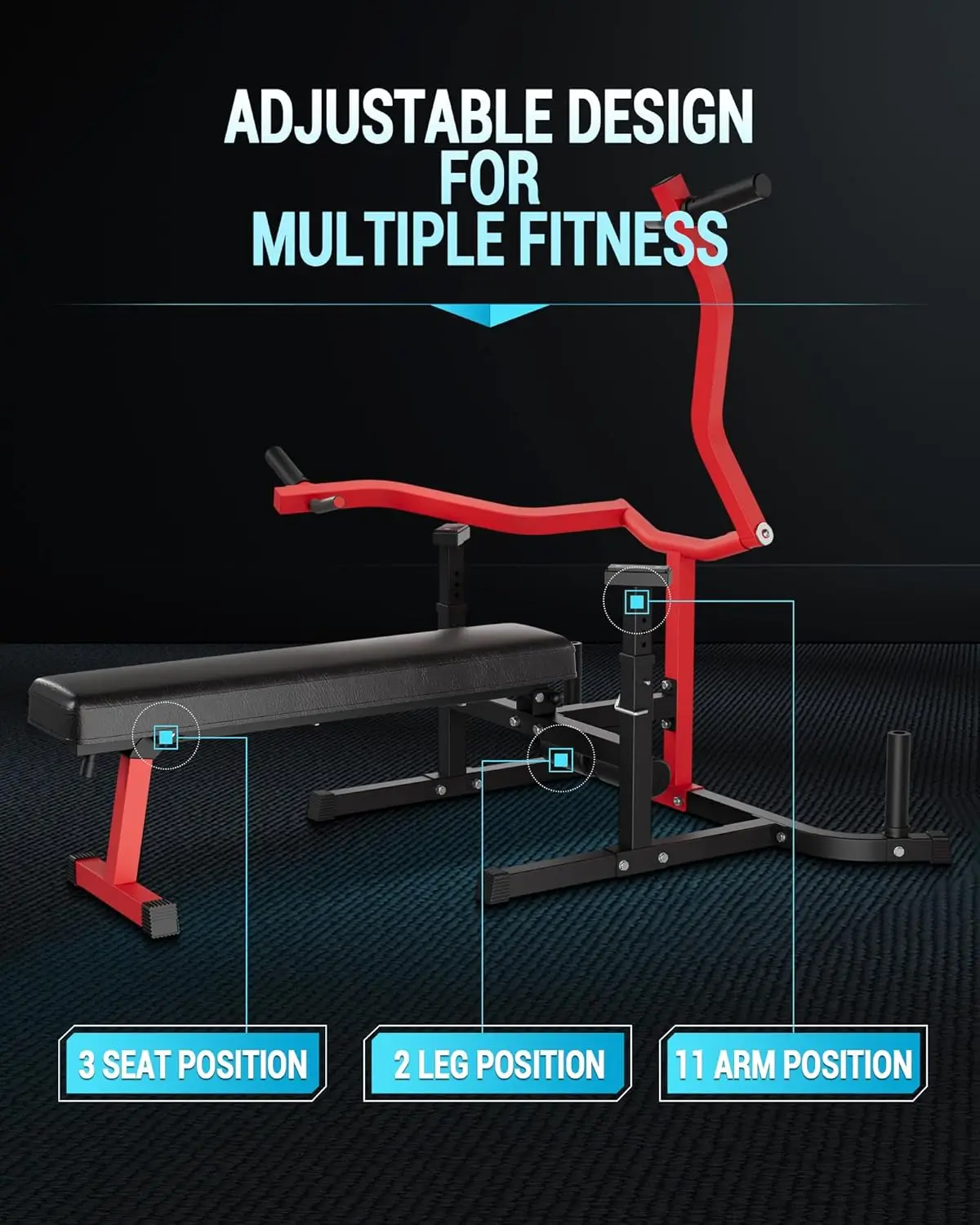 • Versatile Bench Positions: Supports flat, incline, and decline, plus adjustable leg attachments for added exercise variety