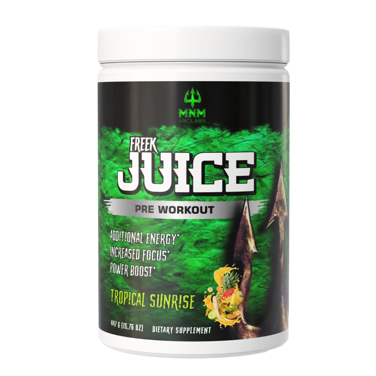 Fuel the grind and sharpen your edge with FREEK-JUICE Pre-Workout – Tropical Sunrise—clean performance support from MNM ProLabs, built to hit harder when your workouts demand more. ‡