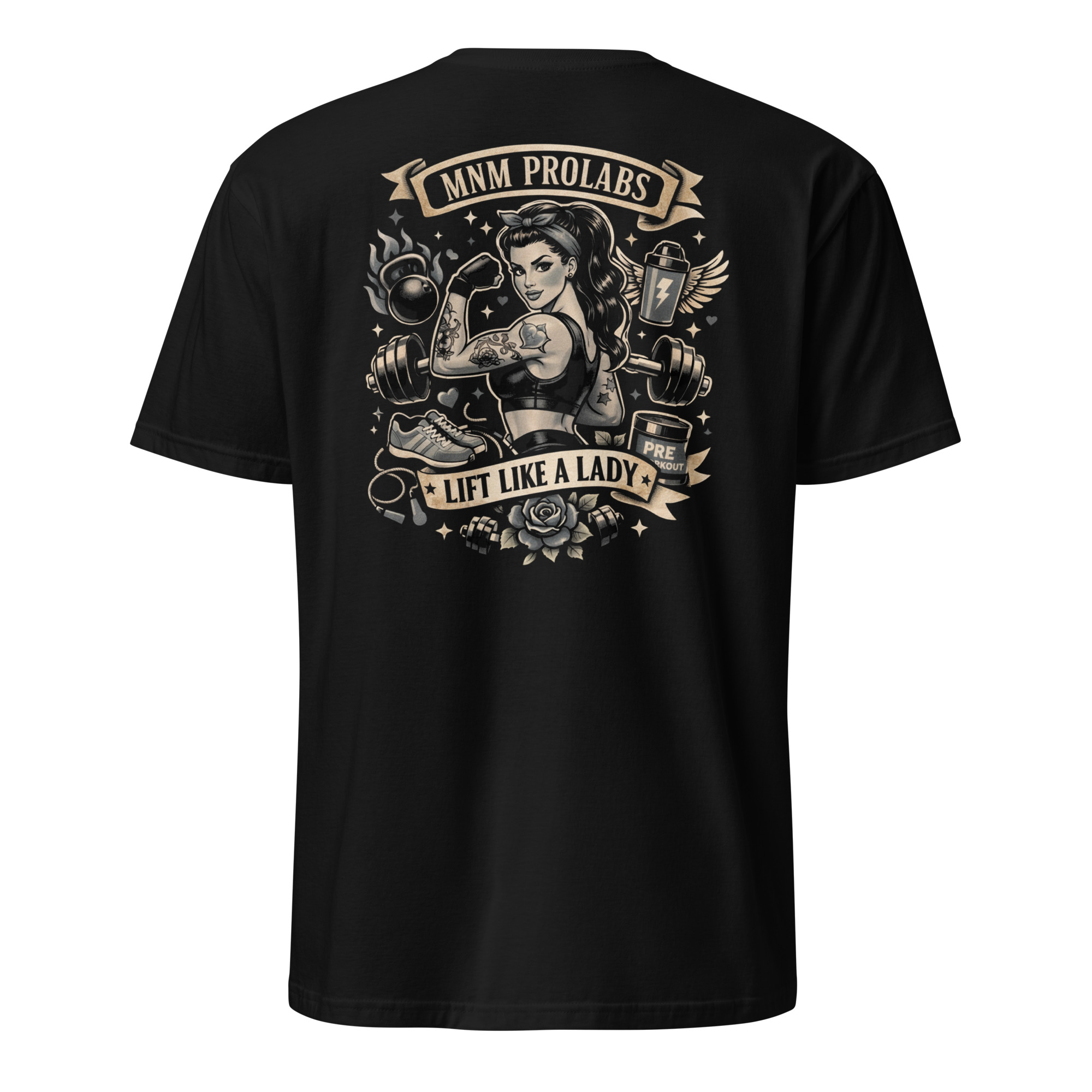 The Lift Like A Lady Signature Tee from the Lift Like A Lady Collection | MNM ProLabs is made for women who lift heavy and live with confidence. Crafted from soft ring-spun cotton with reinforced stitching, it’s built for strength training, conditioning, and everyday wear. The clean, flattering fit pairs perfectly with leggings, shorts, or joggers, taking you from the gym to your daily routine with ease, effortlessly. Wear the mindset. Lift Like A Lady.