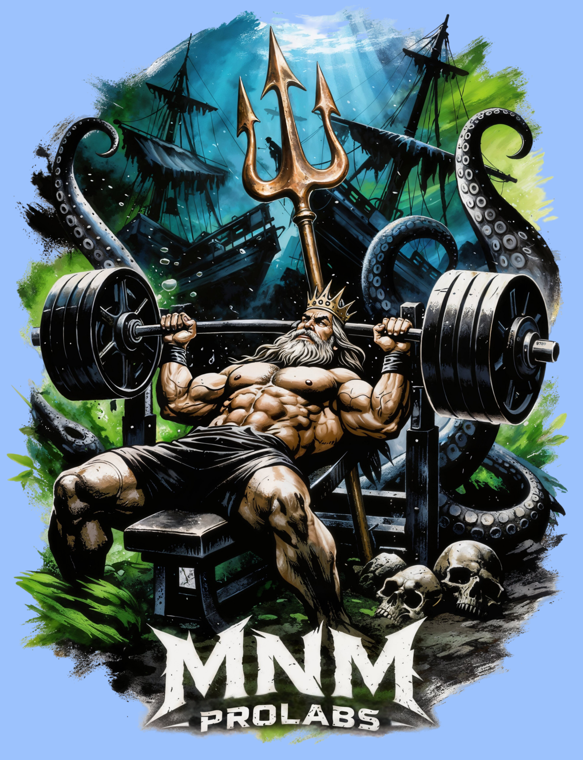 Built for lifters who thrive under pressure, the Poseidon Press Limited Drop Tee features an eye-catching graphic of Poseidon bench pressing underwater—a symbol of relentless power, control, and grit when the weight feels heavier than it should. Designed for training days, rest days, and everything in between, this tee delivers an easy, everyday fit with all-day comfort—whether you’re chasing a PR or repping MNM ProLabs off the gym floor.