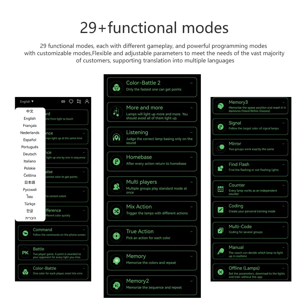 Dynamic Reaction Training: Visual light cues activate randomly or in sequences to challenge speed and decision-making